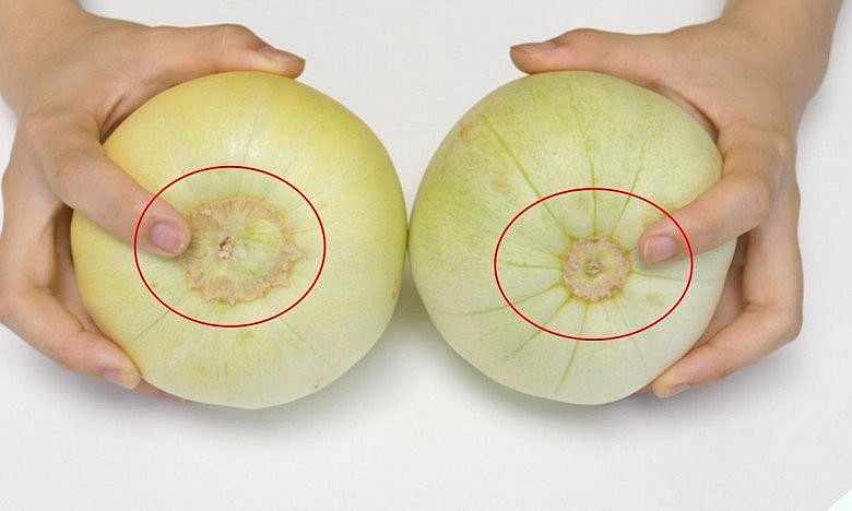Khi chọn dưa, bạn nên lật quả dưa và xem dưới đáy quả lê có phần khoanh tròn, đó chính là rốn của nó. Khi quả lê càng chín thì rốn của lê sẽ càng to ra. Một quả dưa lê ngon là rốn quả dưa phải tròn và đầy, đường tròn rốn có đường kính càng lớn thì quả dưa sẽ càng ngọt và ngon. Khác với cách xem rốn của dưa hấu, rốn của dưa hấu càng nhỏ thì dưa mới ngon. Do đó, bạn nên nhớ kỹ cách chọn dưa lê và dưa hấu đối ngược nhau nhé.