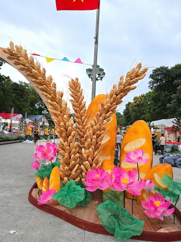 | Tiểu cảnh những bông lúa mì được làm từ những ổ bánh mì tôn vinh món ăn bình dân nhưng đầy tự hào của người dân Việt Nam. |