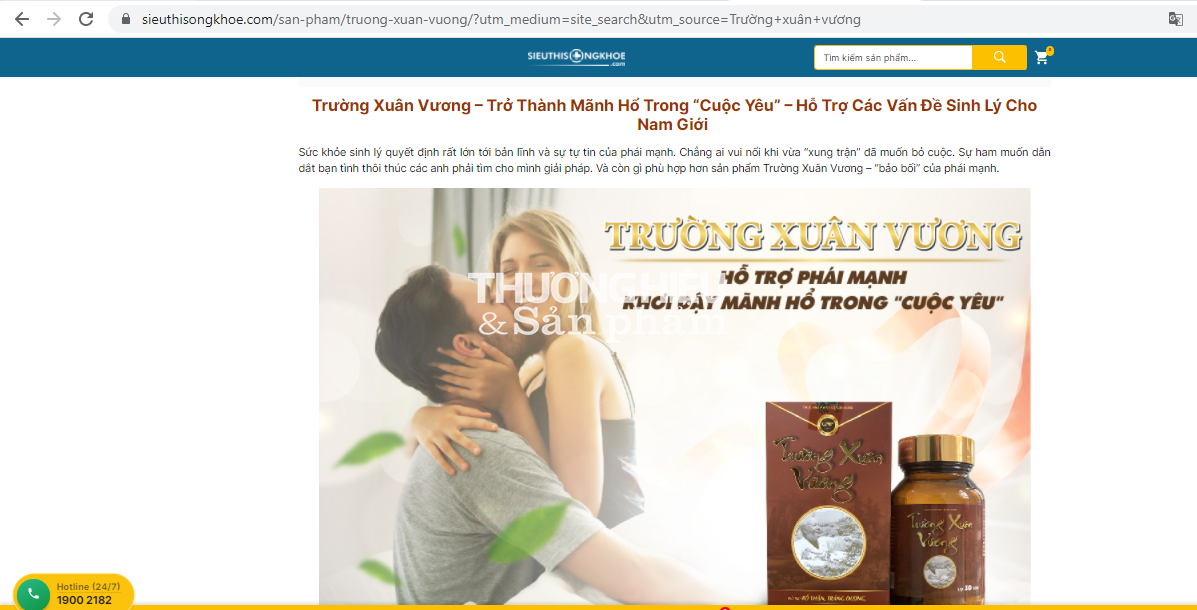 Còn tại website https://sieuthisongkhoe.com sản phẩm TPBVSK Trường Xuân Vương được quảng cáo ví như "“bảo bối” của phái mạnh" như "“chìa khóa vạn năng” của nam giới, giúp các anh tháo gỡ những “khúc mắc” khó chia sẻ cùng ai”.