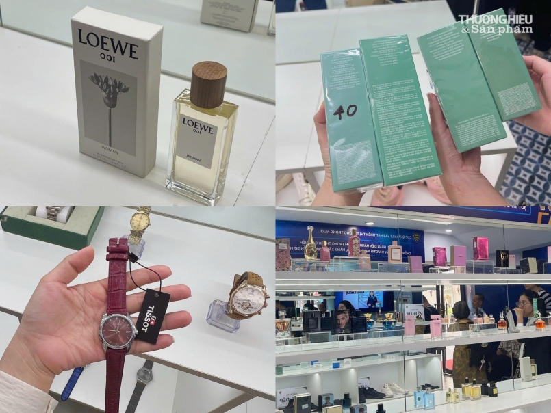 Các mặt hàng được trưng bày gồm: túi xách, ví da, giày dép, đồng hồ, nước hoa, mỹ phẩm… có dấu hiệu vi phạm quyền sở hữu trí tuệ như sao chép bao bì, logo, tem nhãn, hoặc không rõ nguồn gốc xuất xứ, tiềm ẩn nguy cơ gây hại đến sức khỏe người tiêu dùng. Đáng chú ý, nhiều sản phẩm làm giả gần như hoàn toàn hình thức, kiểu dáng và dấu hiệu nhận diện của các thương hiệu nổi tiếng như Louis Vuitton, Chanel, Dior, YSL, Rolex, Nike, Adidas…