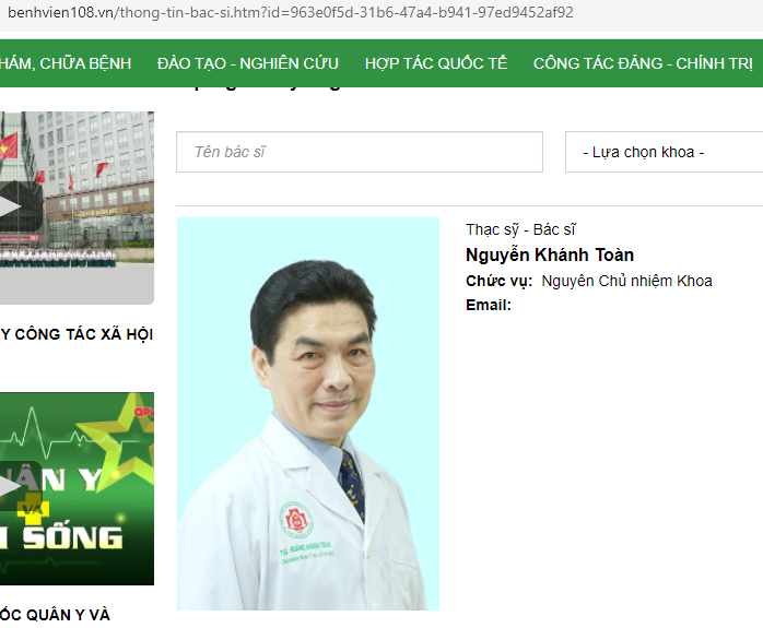 | Theo tra cứu Ths.BS Hoàng Khánh Toàn đã từng công tác tại Bệnh viện 108 |