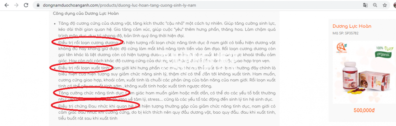 Hay sản phẩm TPBVSK Dương Lực Hoàn cũng được website: https://www.dongnamduochoanganh.com và https://www.dongyhoanganh.com "nổ" có công dụng: Tăng độ cương cứng của dương vật, tăng kích thước “cậu nhỏ” một cách tự nhiên. Giúp tăng cường sinh lực, kéo dài thời gian quan hệ. Gia tăng cảm xúc, giúp cuộc “yêu” thêm hưng phấn, thăng hoa… Điều trị rối loạn cương dương; Điều trị rối loạn xuất tinh; Điều trị chứng Đau nhức khi quan hệ:..
