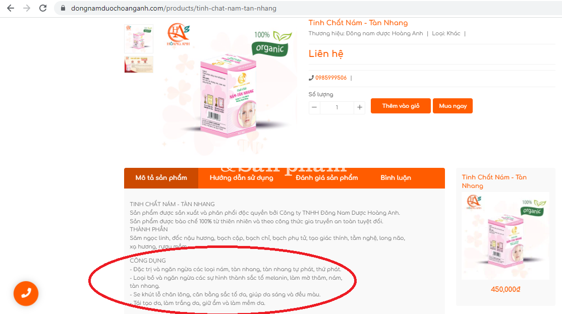 Mặc dù đã bị Cục An toàn thực phẩm “sờ gáy” nhưng theo kết quả khảo sát ngày 17/11/2021 của Phóng viên thì trên các website: https://www.dongnamduochoanganh.com, https://www.dongyhoanganh.com vẫn "chễm chệ" những nội dung quảng cáo sản phẩm TPBVSK: Viêm âm tán Hoàng Cung, Dương Lực Hoàn, Tinh Chất Nám - Tàn Nhang với hàng loạt các công dụng như thuốc chữa bệnh, vi phạm luật quảng cáo.