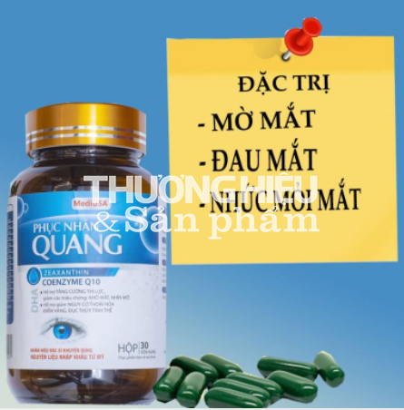 Theo quảng cáo trên website https://phucnhanquang.com/ sản phẩm thực phẩm bảo vệ sức khỏe Phục nhãn quang có công dụng: “Đặc trị mờ mắt, đau mắt, nhức mỏi mắt".