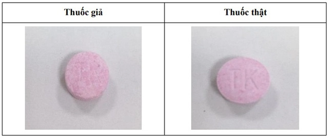Viên thuốc: nét khắc chữ "TK" trên viên thuốc giả không sắc nét; màu sắc trên viên thuốc giả không đồng nhất.