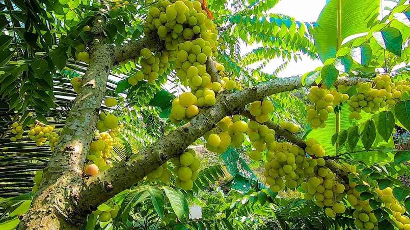 Quả có 3 rãnh dọc, khi chín màu xanh cửu long rồi chuyển đen, bao bọc bởi bao hoa tồn tại.