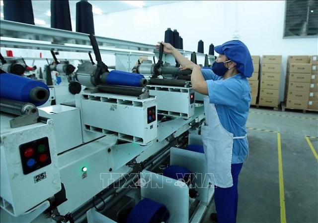 Dây chuyền sản xuất sợi tại Công ty TNHH Dệt nhuộm Jasan Việt Nam có vốn đầu tư của Trung Quốc tại Khu Công nghiệp Phố nối B, Hưng Yên. Ảnh Phạm Kiên - TTXVN.
