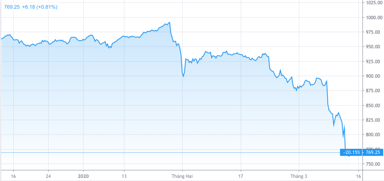 Chứng khoán Mỹ ghi nhận phiên giảm mạnh nhất kể từ vụ sụp đổ thị trường "thứ Hai Đen tối" năm 1987, sau khi Tổng thống Mỹ Donald Trump và Cục Dự trữ liên bang Mỹ (Fed) không thể xoa dịu những lo ngại về khả năng suy giảm kinh tế do tác động từ Covid-19. Chỉ số công nghiệp Dow Jones giảm kỷ lục hơn 2.300 điểm, tương đương gần 10%, còn 21.200 điểm. S&P 500 giảm 9,5% và Nasdaq Compostie cũng giảm 9,4%.