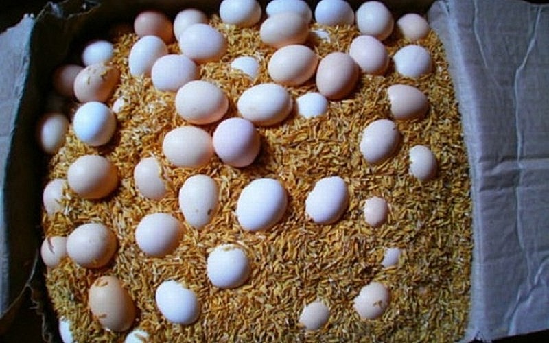 Trấu khô và mùn cưa sẽ giúp bảo quản trứng gà hoặc trứng vịt lên đến vài tháng với cách làm vô cùng đơn giản. Bạn chỉ cần cho một lớp trấu hoặc mùn cưa vào thùng xốp, đặt trứng gà vào rồi tiếp tục rắc thêm trấu/mùn cưa cho đến khi phủ kín mặt trứng.
