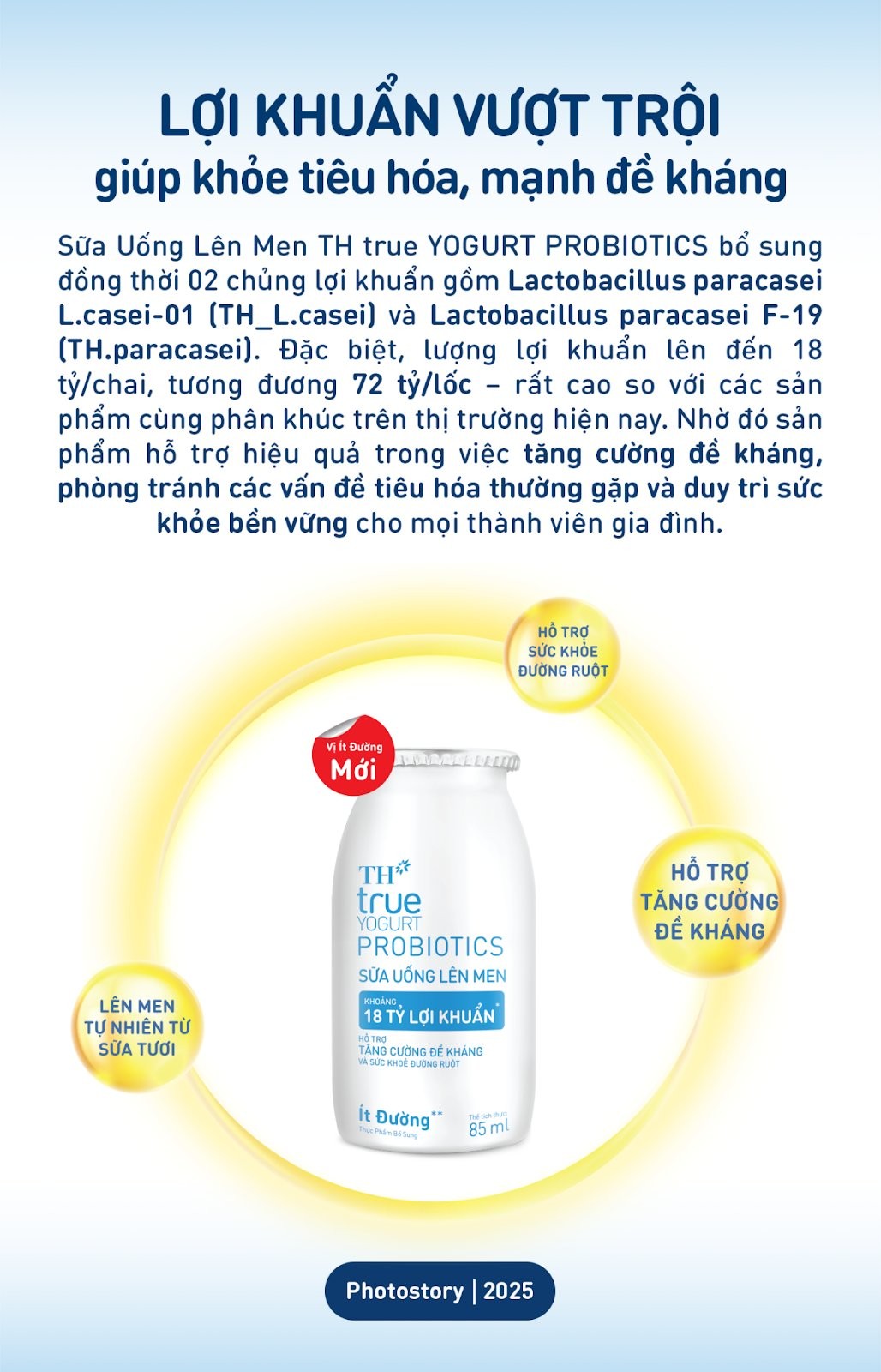 Trong đó, Sữa Uống Lên Men TH true YOGURT PROBIOTICS là một trong số những sản phẩm lọt vào mắt xanh thế hệ này, nhanh chóng trở thành “trợ thủ” dinh dưỡng hàng ngày giúp mẹ Gen Z chăm sóc sức khỏe cả gia đình nhờ hội tụ nhiều ưu điểm sáng giá.