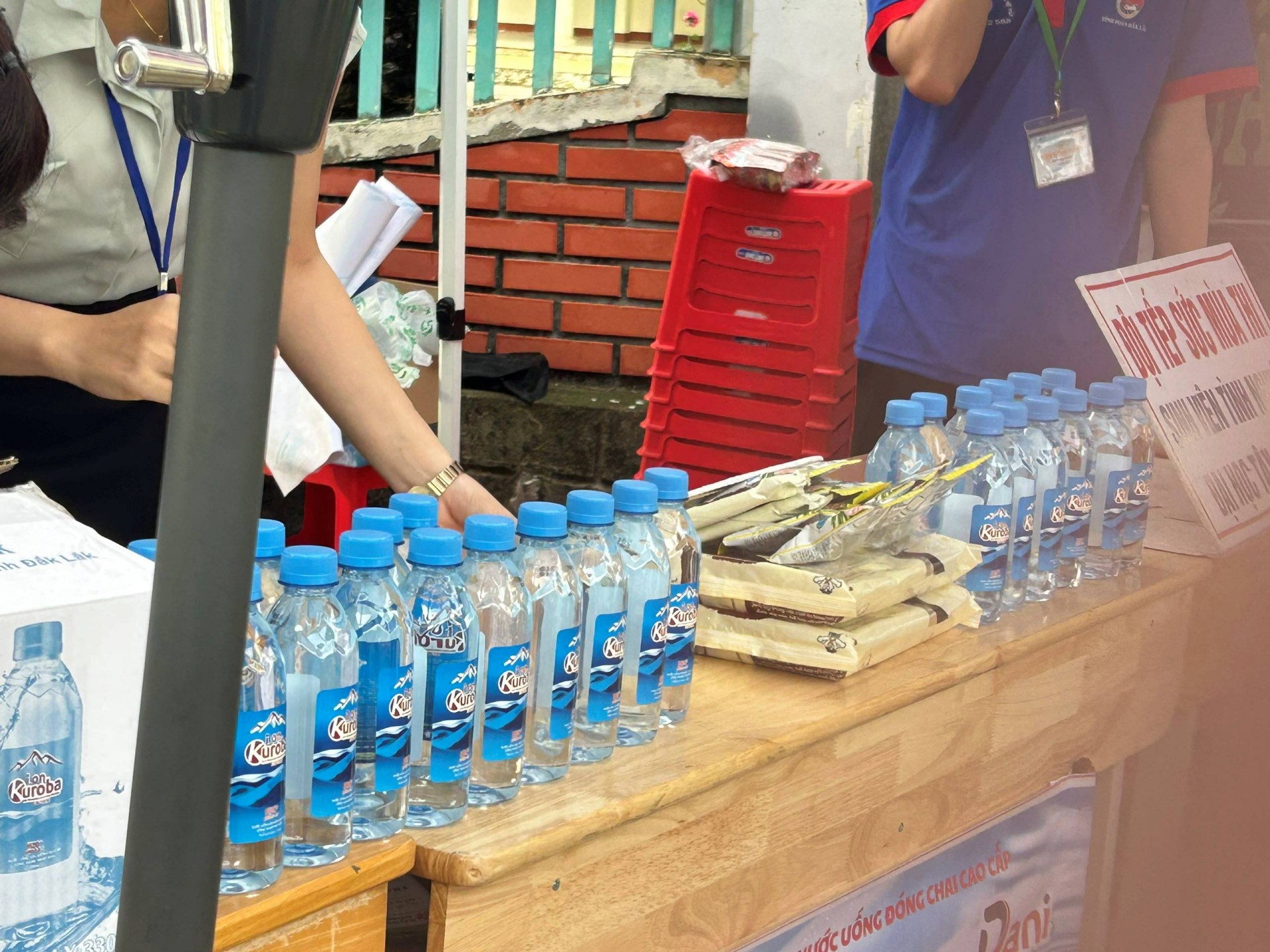 | Thanh niên tình nguyện "Tiếp sức mùa thi" tại điểm thi Trường THPT Chu Văn An tham gia hỗ trợ nước uống cho thí sinh. |