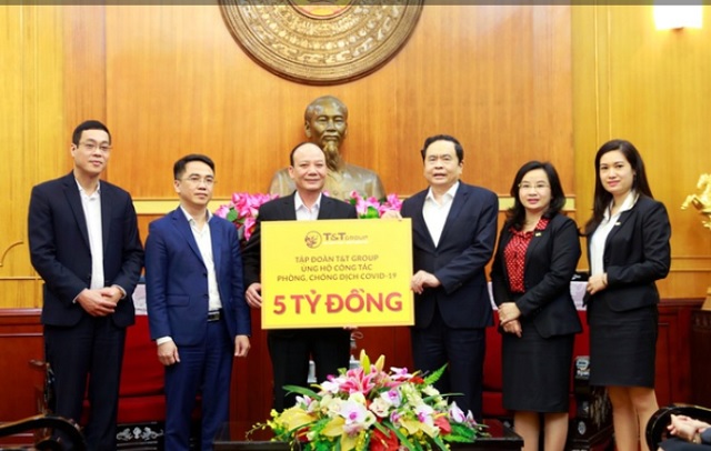 Hưởng ứng lời kêu gọi của Thủ tướng Chính phủ và Đoàn Chủ tịch Ủy ban Trung ương MTTQ Việt Nam, ngày 19/3, tại Hà Nội, Tập đoàn T&T Group và Ngân hàng SHB, mỗi bên đã trao ủng hộ 5 tỷ đồng cho công tác phòng chống dịch COVID-19. Tiếp nhận khoản hỗ trợ, đồng chí Trần Thanh Mẫn, Bí thư Trung ương Đảng, Chủ tịch Ủy ban Trung ương MTTQ Việt Nam cảm ơn Tập đoàn T&T Group, Ngân hàng SHB và các doanh nghiệp đã quan tâm, hưởng ứng lời kêu gọi toàn dân tích cực ủng hộ phòng chống dịch COVID-19. Các nguồn lực ủng hộ từ người dân và doanh nghiệp sẽ được Ủy ban Trung ương MTTQ Việt Nam điều chuyển cho ngành y tế, lực lượng vũ trang để mua sắm trang thiết bị, chi phí cho công tác phòng chống dịch. “Giữa lúc đất nước đang khó khăn, sự chung tay của các doanh nghiệp, của các tập đoàn lớn là hết sức quan trọng và ý nghĩa” – đồng chí Trần Thanh Mẫn nhấn mạnh.