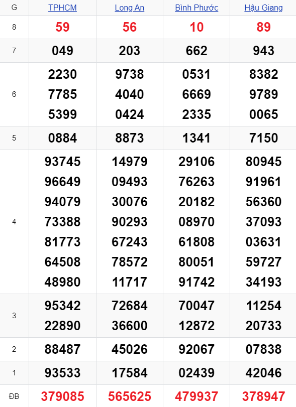 - 2 số cuối giải đặc biệt: 17 - 82 - 56 - 74 - 43 - 99 - 65