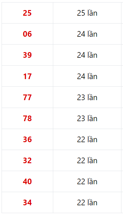 ►Những cặp số xuất hiện nhiều nhất trong vòng 30 lần quay:
