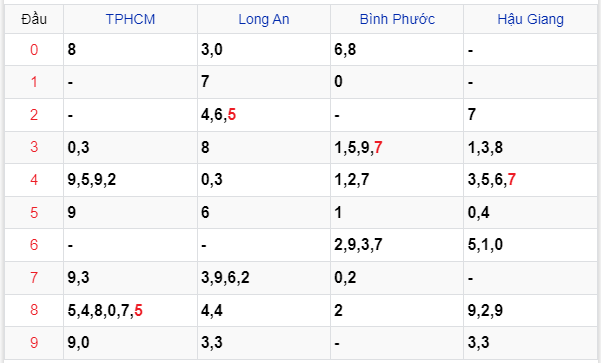 - Đặc biệt đầu, đuôi: 3, 9