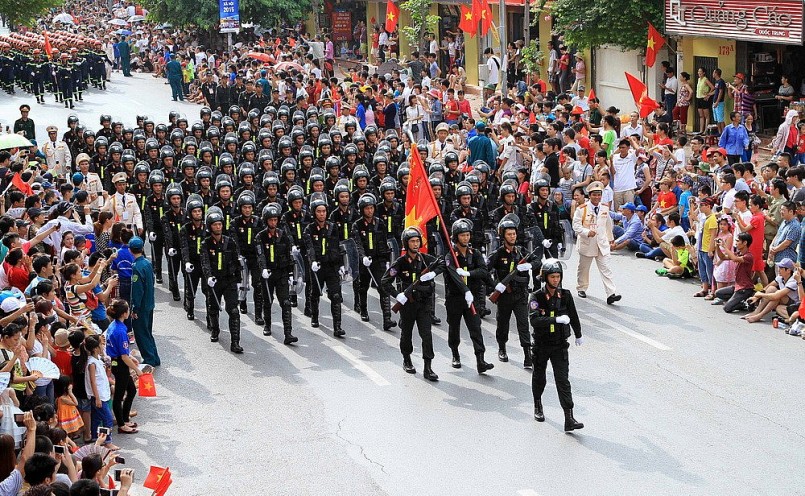 Ngay từ trưa cùng ngày, hàng nghìn người dân đã đổ về các tuyến phố quanh khu vực như Hùng Vương, Nguyễn Thái Học, Độc Lập… để theo dõi màn hợp luyện. Người dân đứng ken kín hai bên đường, nhiều gia đình đưa cả trẻ nhỏ đến để hòa chung không khí háo hức, náo nức.