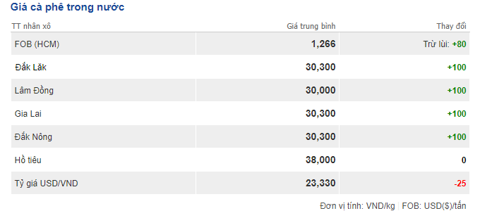 TH&SP Giá cà phê trong nước hôm nay 30/4 tiếp tục tăng, giá cà phê nhân xô tại các tỉnh Tây Nguyên và miền Nam dao động từ 29.900 – 30.400 đồng/kg.