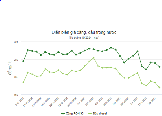Tính từ đầu năm 2025 đến nay, giá xăng dầu trong nước đã trải qua 19 lần điều chỉnh, trong đó có 9 lần giảm, 7 lần tăng và 3 lần điều chỉnh trái chiều.