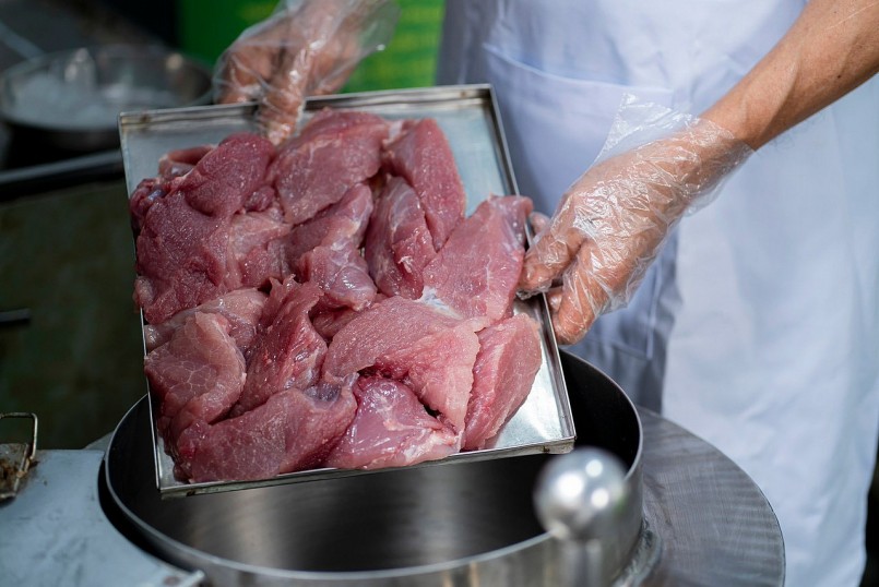 Sự tỉ mỉ, kỳ công trong việc làm giò chả Vạn Xuân Tân Ước được thể hiện qua nhiều khâu, từ việc chọn nguyên liệu đến chế biến thành phẩm.