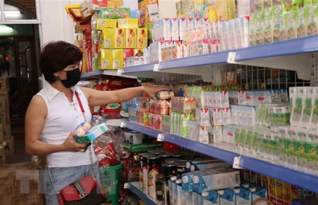 Người dân chọn mua tại cửa hàng tạp hóa. (Ảnh: Thái Hùng/TTXVN)