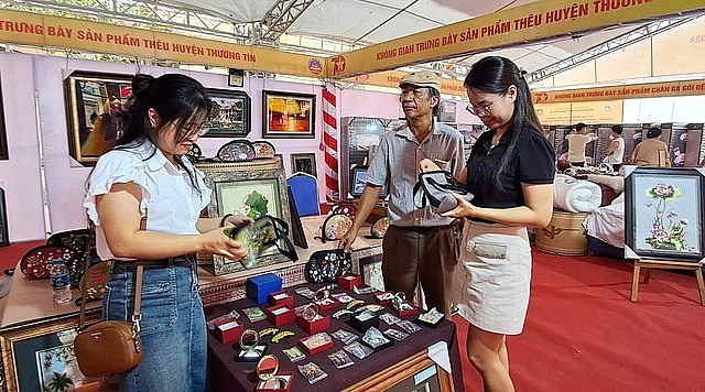 | Người dân Thủ đô chiêm ngưỡng các sản phẩm làng nghề truyền thống huyện Thường Tín tại Festival làng nghề thiết kế sáng tạo và Triển lãm các sản phẩm OCOP, sản phẩm văn hóa, thủ công mỹ nghệ và làng nghề huyện Thường Tín 2024. |