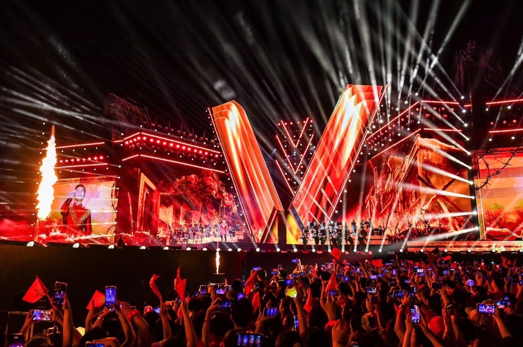 Tối 1/9, tại sân vận động Mỹ Đình, hàng vạn khán giả được thưởng thức “Đêm nghệ thuật sử thi”. Sân khấu lấy cảm hứng từ truyền thuyết Lang Liêu, nơi các giọng ca gạo cội như Thanh Lam, Đăng Dương, Trọng Tấn hòa giọng cùng Mỹ Tâm, Tùng Dương, Đen, Mono. Những màn biểu diễn có sự tham gia của 13 khối quần chúng đã tái hiện các dấu mốc lịch sử, gợi niềm tự hào về hành trình 80 năm dựng xây đất nước.