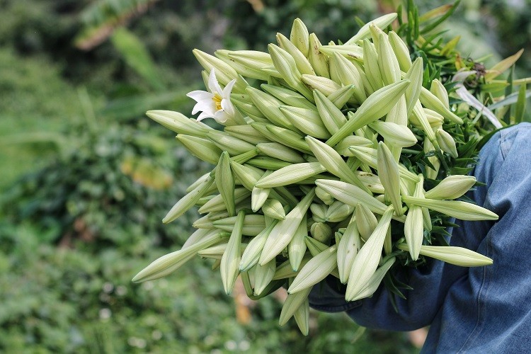 Hiện nay trên thị trường, hoa loa kèn có giá khoảng 20 – 30 ngàn đồng/bó 10 bông lẻ. Mức giá này giảm khoảng 50% so với cùng thời điểm đầu vụ năm ngoái.