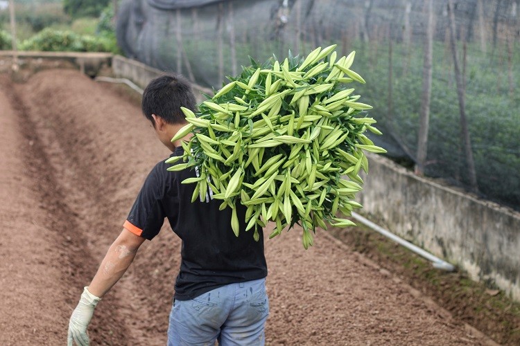 Tuy nhiên, với tình hình dịch bệnh hiện nay, mỗi ngày nông dân chỉ cắt từ 1000 – 1500 bông mang đi tiêu thụ khắp các chợ đầu mối ở Hà Nội. Chị Đan – Một người trồng loa kèn lâu năm ở Tây Tựu cho biết: “Có nhiều năm ảnh hưởng của thời tiết hoa cũng khó bán nhưng chưa bao giờ ế ẩm như năm nay. Thay vì chỉ bán buôn, vợ chồng tôi đã phải tự chở hoa đi bán lẻ từ sáng sớm”.