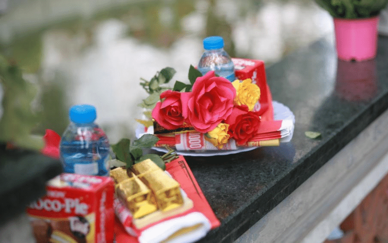 Theo phong tục truyền thống, các mặt hàng được tiểu thương bày bán và được tiêu thụ trong ngày hôm nay chủ yếu là hoa, quả tươi, bánh kẹo, vàng mã... phục vụ người dân đi Lễ.