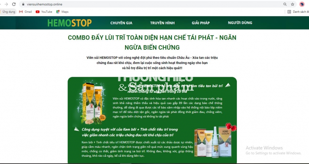 Lạc vào “ma trận” quảng cáo có dấu hiệu lừa người dùng của sản phẩm Viên sủi Hemostop