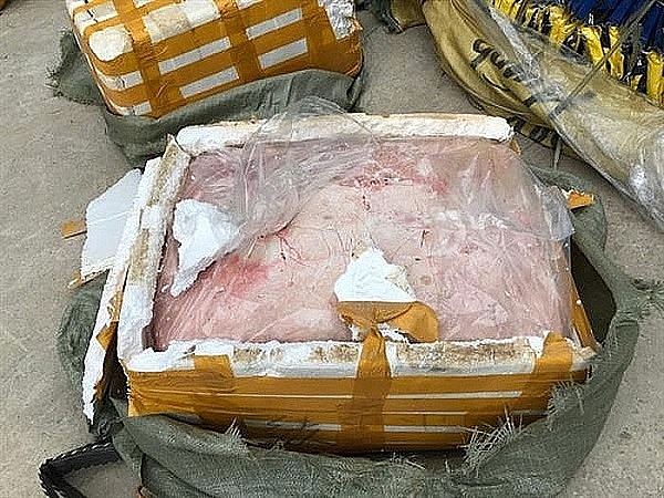 Lạng Sơn: Bắt giữ xe ô tô tải vận chuyển trên 2 tấn nầm lợn bốc mùi