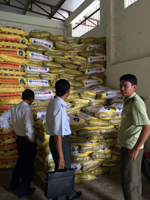 Cơ quan chức năng kiểm tra tình hình kinh doanh phân bón. Ảnh: Đức Trung.