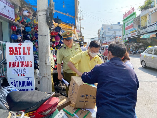 Lực lượng QLTT Bến Tre giám sát mặt hàng khẩu y tế. Nguồn Internet.
