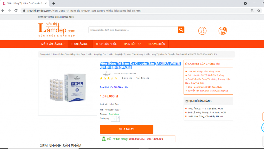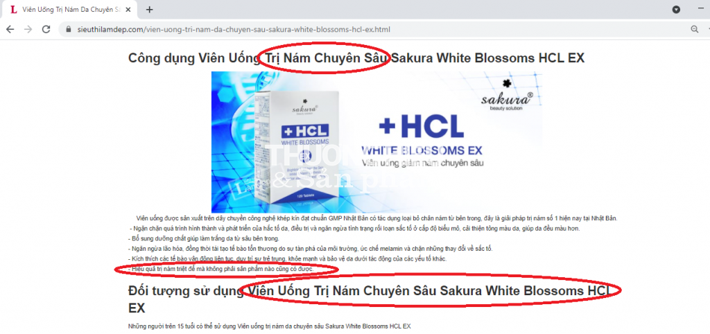 Đơn cử như sản phẩm Viên Uống Trị Nám Da Chuyên Sâu SAKURA WHITE BLOSSOMS HCL EX được Website https://sieuthilamdep.com/ quảng cáo sản phẩm này có công dụng: Ngặn chặn quá trình hình thành và phát triển của hắc tố da, điều trị và ngăn ngừa tình trạng rối loạn sắc tố ở cấp độ biểu mô, cải thiện tông màu da, giúp da đều màu hơn. Ngăn ngừa lão hóa, đồng thời tái tạo tế bào tổn thương do sự tàn phá của môi trường, ức chế melamin và chặn những thay đổi về sắc tố. Hiệu quả trị nám triệt để mà không phải sản phẩm nào cũng có được...