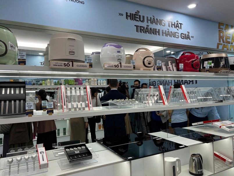 | Các sản phẩm trưng bày đều có đối chứng thật - giả giúp người tiêu dùng dễ dàng nhận diện. |