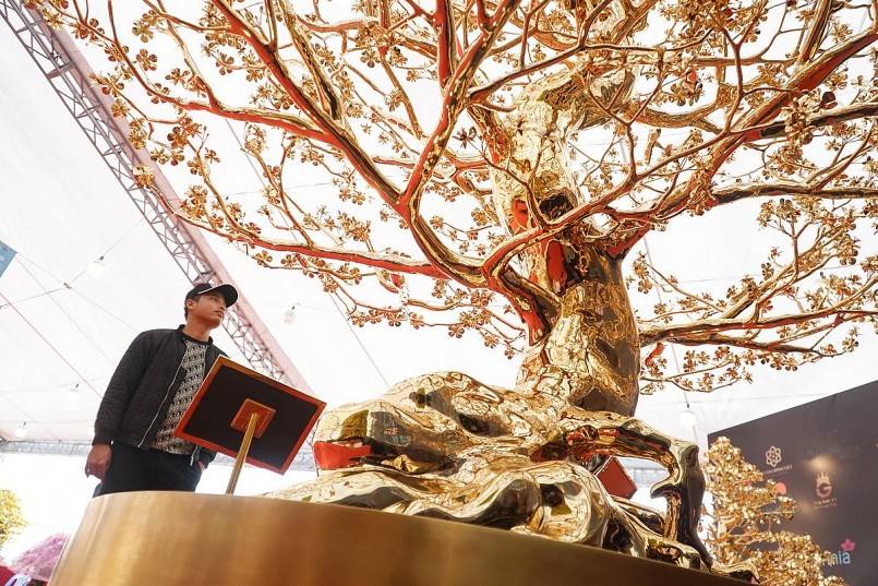 Cây mai vàng có chiều cao 3m, được làm bằng đồng nguyên khối và mạ vàng 24k. Hiện cây mai này đang được trưng bày để phục vụ người dân Hà Nội chiêm ngưỡng trong dịp Tết Nguyên đán Quý Mão 2023.