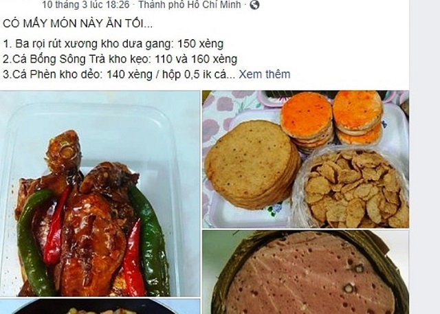 Đồ ăn bán online của một cửa hàng ở quận 3. Ảnh: Hồng Châu.