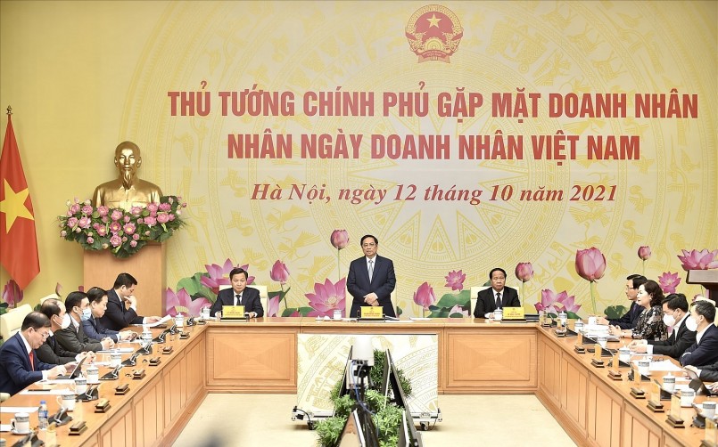 | Thủ tướng Chính phủ gặp gỡ các doanh nhân nhân ngày Doanh nhân Việt Nam năm 2021. |