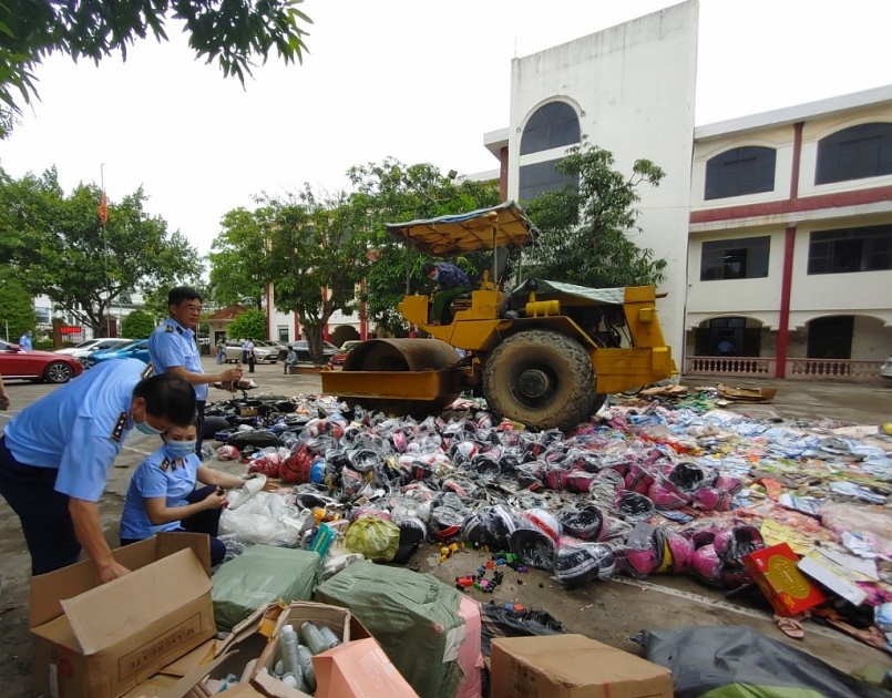 Nghệ An tiến hành tiêu hủy gần 44.000 đơn vị hàng hóa vi phạm hành chính bị tịch thu 6 tháng đầu năm 2021. |