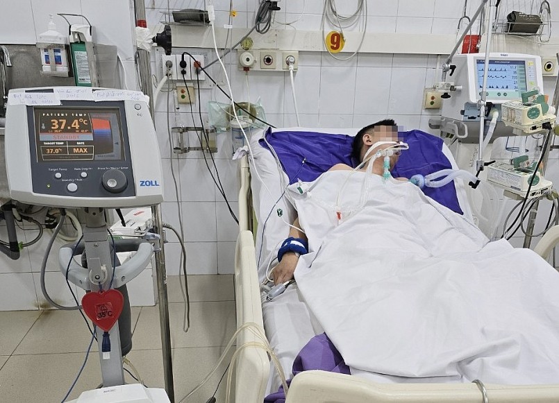 | Bệnh nhân T. được điều trị tích cực bằng kỹ thuật hạ thân nhiệt chỉ huy. Ảnh: Bệnh viện Bãi Cháy |