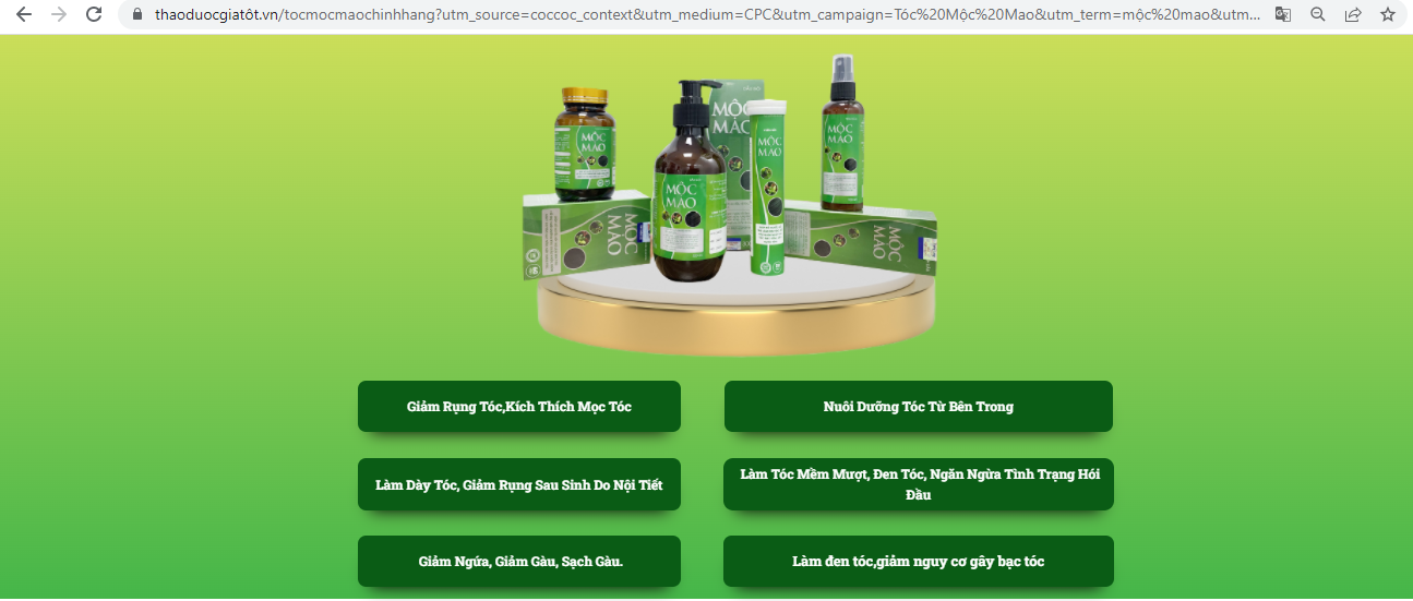 Tất cả những thông tin quảng cáo trên khiến không ít khách hàng lầm tưởng sản phẩm TPBVSK Mộc Mao có công dụng điều trị và ngăn ngừa rụng tóc, đặc biệt là việc rụng tóc sau hậu Covid-19.