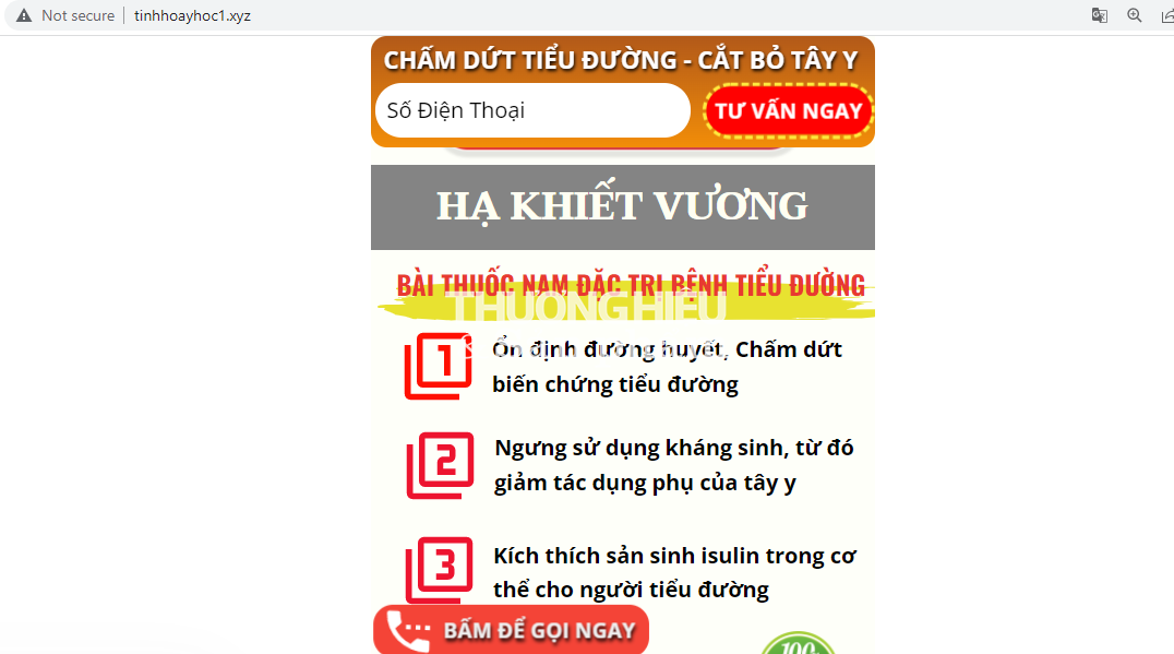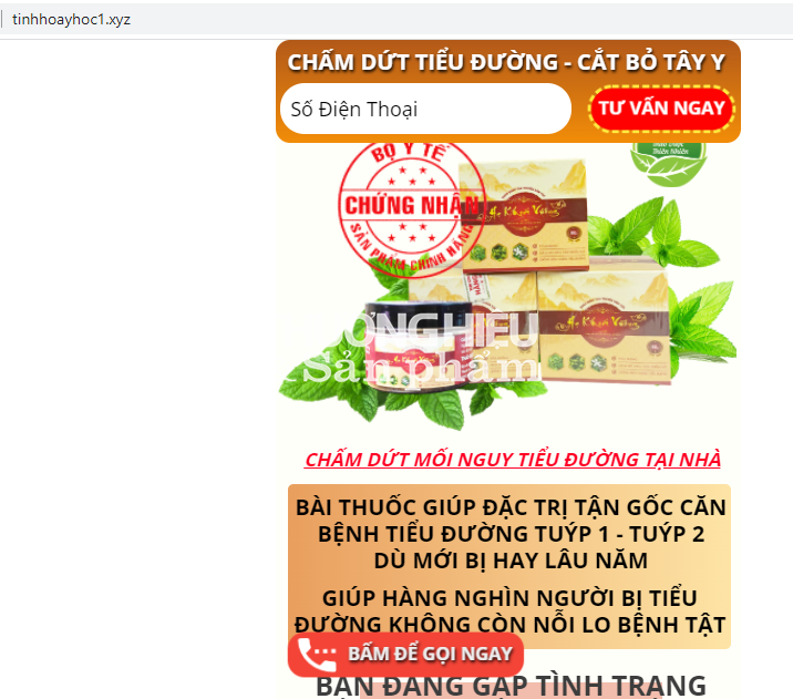 Tại http://www.tinhhoayhoc1.xyz/ quảng cáo Hạ Khiết Vương là bài thuốc giúp đặc trị tận gốc căn bệnh tiểu đường tuýp 1 - tuýp 2 dù mới bị hay lâu năm. Giúp hàng nghìn người bị tiểu đường không còn nỗi lo bệnh tật