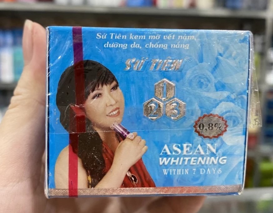 Kem mờ vết nám dưỡng da chống nắng (Nhãn hàng: Sứ tiên) - Hộp 1 lọ 8g cũng bị thu hồi theo công văn số 54/QLD-MP, có NSX:20/02/2024; HSD:20/02/2027. Sản phẩm doCông ty TNHH sản xuất mỹ phẩm Anh Đào sản xuất và đưa ra thị trường (Địa chỉ: Số 1/18D, đường Chi Lăng, phường Vĩnh Bảo, thành phố Rạch Giá, tỉnh Kiên Giang). Sản phẩm bị đình chỉ lưu hành và thu hồi do có mẫu kiểm nghiệm không đạt tiêu chuẩn chất lượng do chứa Acid salicylic không có trong thành phần công thức sản phẩm đã được cấp số tiếp nhận Phiếu công bố sản phẩm mỹ phẩm.