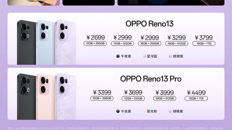 Mức giá của các phiên bản dòng Reno13 tùy theo từng cấu hình cụ thể như sau: