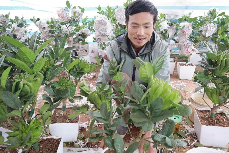 Ông Nguyễn Quang Thạch (Hà Nội) cho biết, gia đình có hơn 20 năm trồng phật thủ, trước chỉ trồng lấy quả nhưng giờ đã chuyển sang trồng cây cảnh. Tết này, gia đình chuẩn bị 1.500 cây phôi, ghép quả đã giao cho thương lái được hơn một nửa. Gia đình ông Thạch chuyên hàng “bình dân”, cây nhỏ, mỗi cây chỉ để từ 1 đến 5 quả, có giá từ vài trăm đến khoảng 3 triệu đồng/cây, bán rất chạy.