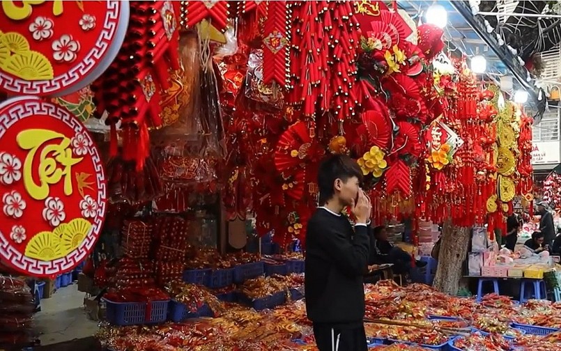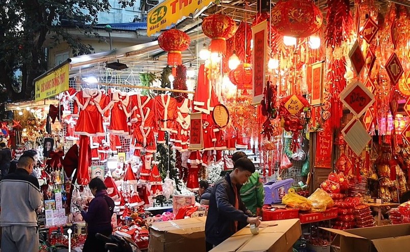 | Một tiểu thương cho biết, ngay sau lễ Giáng sinh, họ đã phải thức trắng đêm để nhanh chóng bài trí các mặt hàng, phục vụ nhu cầu trang trí dịp Tết cổ truyền của người dân. |