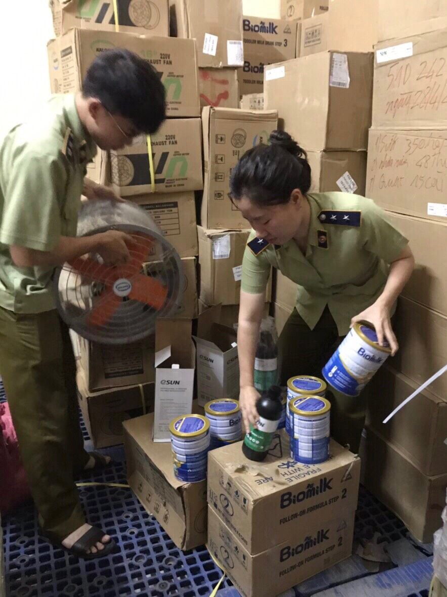 Kết quả khám phương tiện, Đoàn kiểm tra phát hiện trên xe ô tô tải vận chuyển 350 hộp sữa bột Made in Australia và 202 hộp nước nhựa 3D; 210 hộp nhựa in; 15 cái quạt công nghiệp (Made in China) không có hóa đơn, chứng từ chứng minh tính hợp pháp của hàng hóa theo quy định của pháp luật.