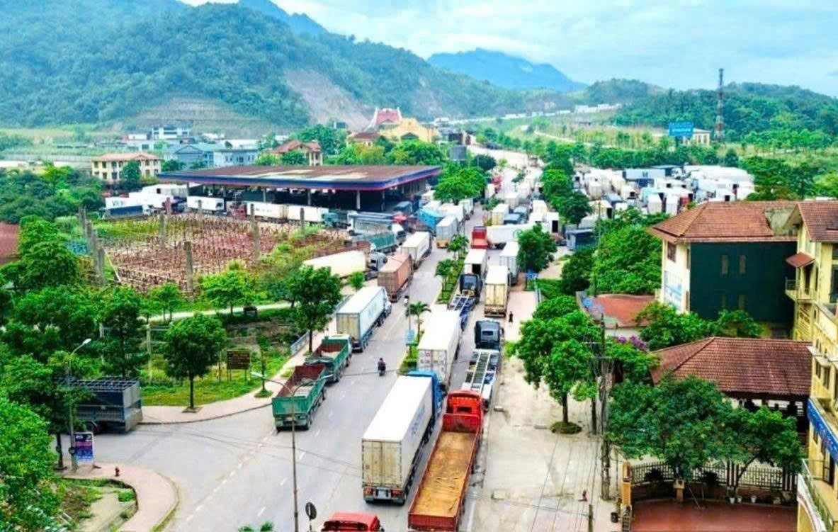 | Hàng trăm chuyến xe container xếp hàng vào làm thủ tục tại cửa khẩu quốc tế Cha Lo |
