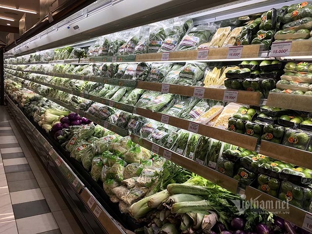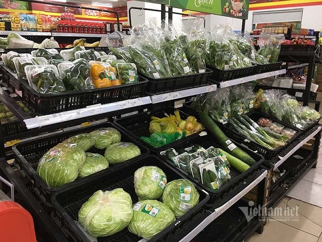 Tại siêu thị, các mặt hàng rau xanh luôn đầy ắp trên quầy kệ
