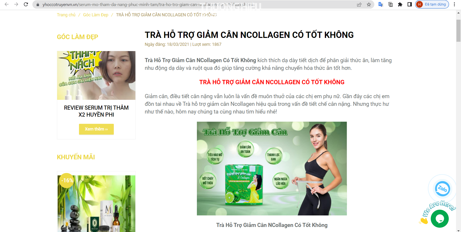 đăng nội dung quảng cáo các sản phẩm Thực phẩm bảo vệ sức khỏe Trà Hỗ trợ giảm cân N Collagen vi phạm quy định pháp luật về quảng cáo.